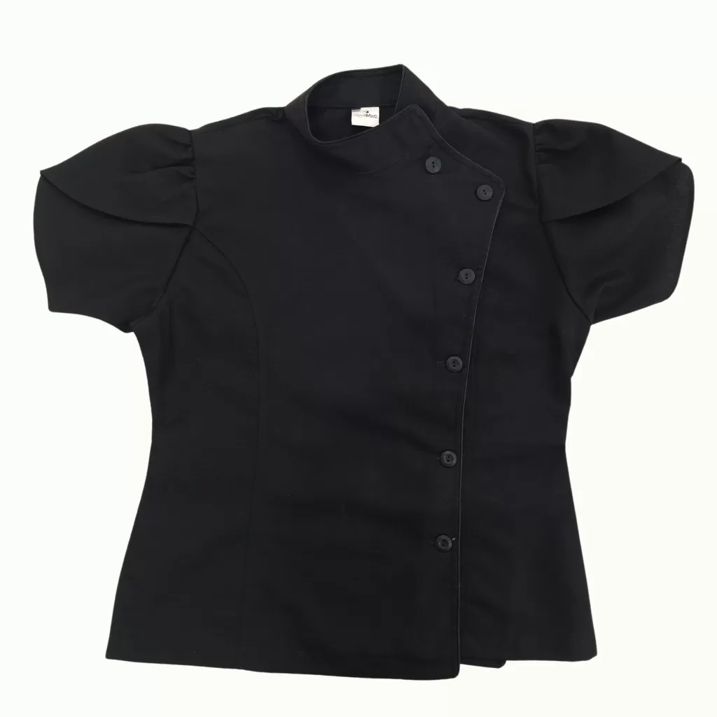 filipina deli negro para chef damaFilipina para Chef Dama Estilo Deli con Mangas Tulipán – Rodmati